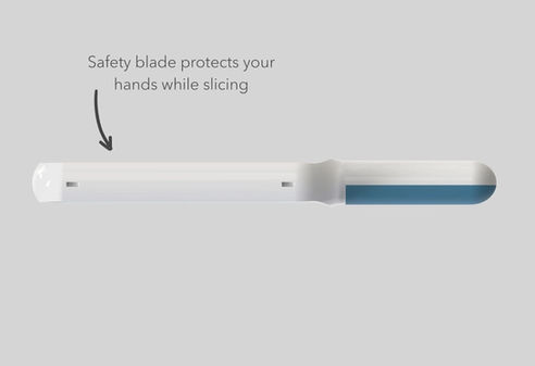 Effortlessly slice your favorite bagels, breads, and pastries using this set of two safety bagel cutters. The stainless steel serrated blade glides smoothly for even slices, while the clever design shields your hand as you work. When not in use, a protective sheath covers the blade for added peace of mind.